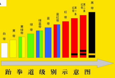 段位制度是由晉段、注冊(cè)、考試、審批、管理、監(jiān)督和懲罰組成的制度。劃分段位的依據(jù)是申請(qǐng)者的年齡、訓(xùn)練年限、技術(shù)水平,各個(gè)國(guó)家按照世界跆拳道運(yùn)動(dòng)聯(lián)合會(huì)的有關(guān)考試標(biāo)準(zhǔn)經(jīng)過(guò)考核向本聯(lián)合會(huì)的成員授與段位。然后,報(bào)告世界跆拳道運(yùn)動(dòng)聯(lián)合會(huì)審核認(rèn)定。段位制度中包括晉段晉級(jí)兩部分,段位稱(chēng)號(hào)從低到高為9個(gè)段 次,9段最高,段下為1至10級(jí),最低為10級(jí)。用白、黃、紅、綠、藍(lán)的腰 帶來(lái)區(qū)別,入段者系黑帶。另外,16歲以下的選手入段稱(chēng)為入“品”(1至3品)。從 1段升至2段要1年,2段升至3段要2年,3段升至4段要3年,依次類(lèi)推,8段升至 9段要8年 。